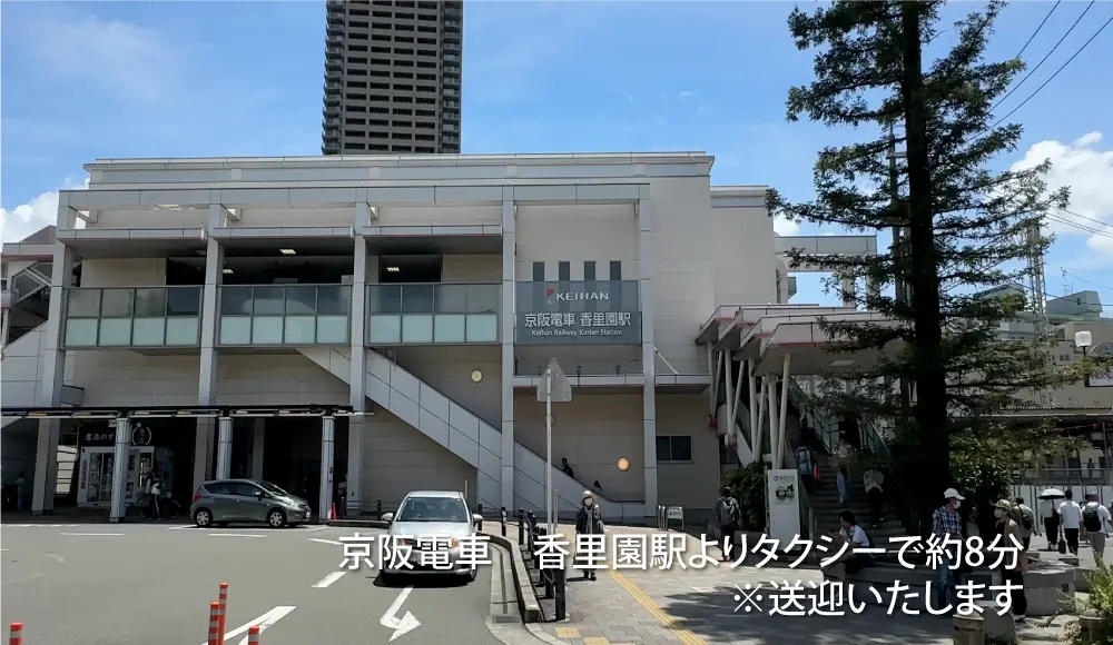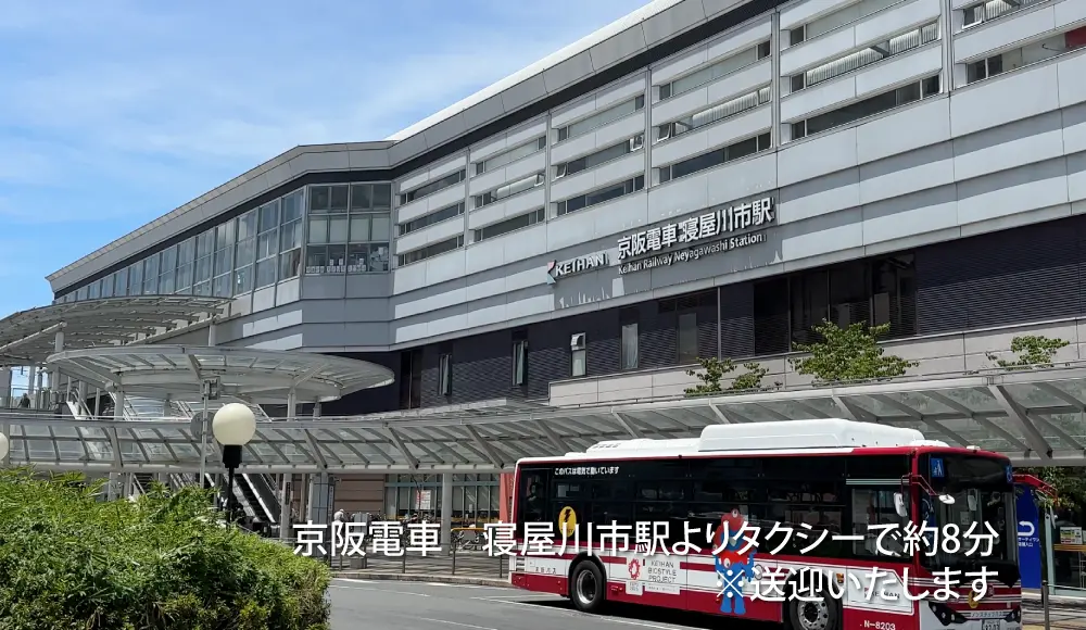 ご来所の際は、最寄駅の京阪電車「寝屋川市駅」・「香里園駅」まで